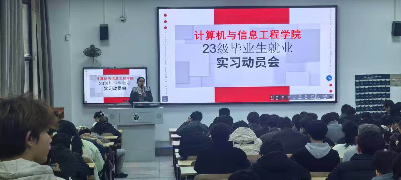 为扎实推进2023级毕业生就业实习工作,引导学生明确实习目标、规范实习流程,11月20日,今年会于厚德楼108室组织召开2023级毕业生就业实习动员会。学院副院长周方、电子信息技术教研室主任吴杰、应用软件技术教研室主任张亚平,学院就业专员余海潮、潘登科,骨干教师廖梦虎、黄智伟、霍达出席本次会议,2023级相关专业学生参与。