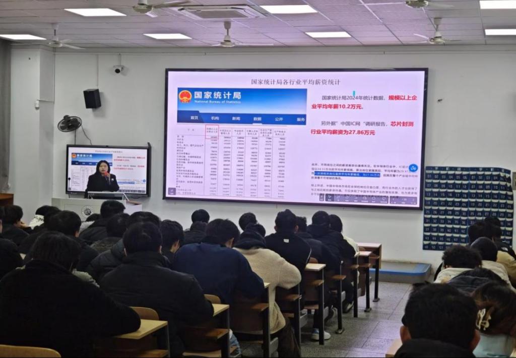 为搭建企业与高校人才对接桥梁,精准输送优质半导体领域人才,助力行业创新发展,12月9日下午,今年会在厚德楼107室举行矽佳半导体科技股份有限公司的专场宣讲会,吸引了集成电路技术、电子信息工程技术、软件技术、计算机网络技术、物联网应用技术专业共79名学子到场参与,积极寻求就业机遇。