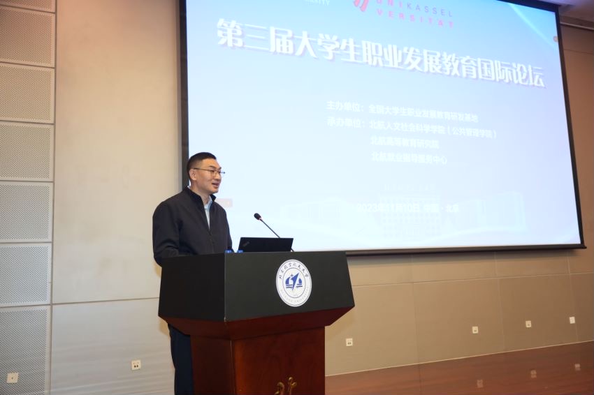 2023年11月10日,全国大学生职业发展教育研发基地学术委员会第三次会议暨第三届大学生职业发展教育国际论坛在北航举行。由北航和德国卡塞尔大学共同主办的本次国际论坛,汇聚了来自德国卡塞尔大学、芬兰坦佩雷大学、英国曼彻斯特大学、丹麦奥胡斯大学、北京大学、香港大学、北京理工大学、沈阳师范大学、中国劳动和社会保障科学研究院、华为、智联招聘等高校及企业的专家学者齐聚北航。教育部学生服务与素质发展中心、校学生中心、人文公管学院、高等教育研究院、全国大学生职业发展教育研发基地、来自全国各地的师生及企业人士出席会议。