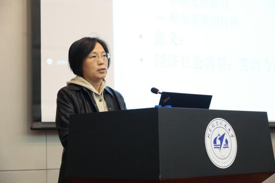 马永红教授最后作题为《中国专业学位研究生创新创业的学校支持研究》的报告。报告从国际专业学位研究生教育发展特征、中国专业学位研究生教育发展简况、中国专业学位研究生就业取向、学校对于专业学位研究生创新创业支持性影响以及中国专业学位研究生就业的发展趋势五个方面阐释了学校如何支持中国专业学位研究生创新创业,有所作为。