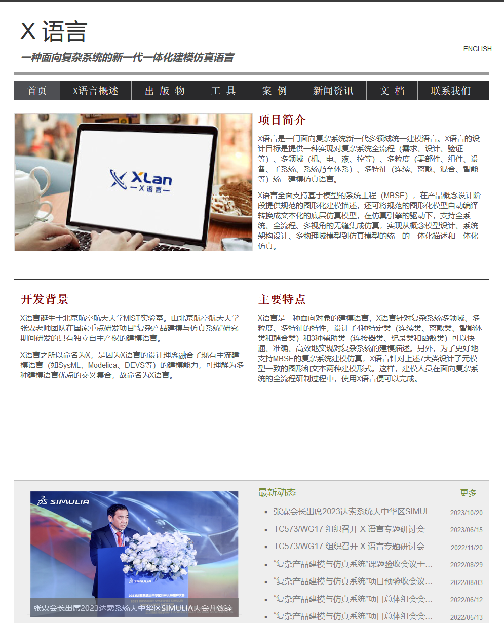MBSE(基于模型的系统工程)是开展复杂产品正向设计和原始创新的关键和必经之路。X语言是在国家重点研发项目支持下,由永利官网张霖教授团队自主研发的一种基于MBSE理念面向复杂产品协同设计的一体化建模仿真语言。团队以年轻博士生为核心,经过近五年的攻关,突破了现有技术路线的束缚,从根本上解决了现有MBSE方法设计建模与仿真验证相互脱节的问题,可实现从概念模型、系统架构、多物理域模型到仿真模型的统一描述和一体化仿真验证,并使得设计参数的全系统智能优化成为可能。X语言及相应的方法和软件形成了我国自主研发的第一个完整的MBSE技术体系。