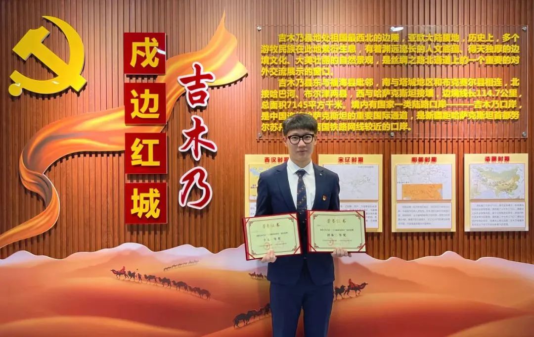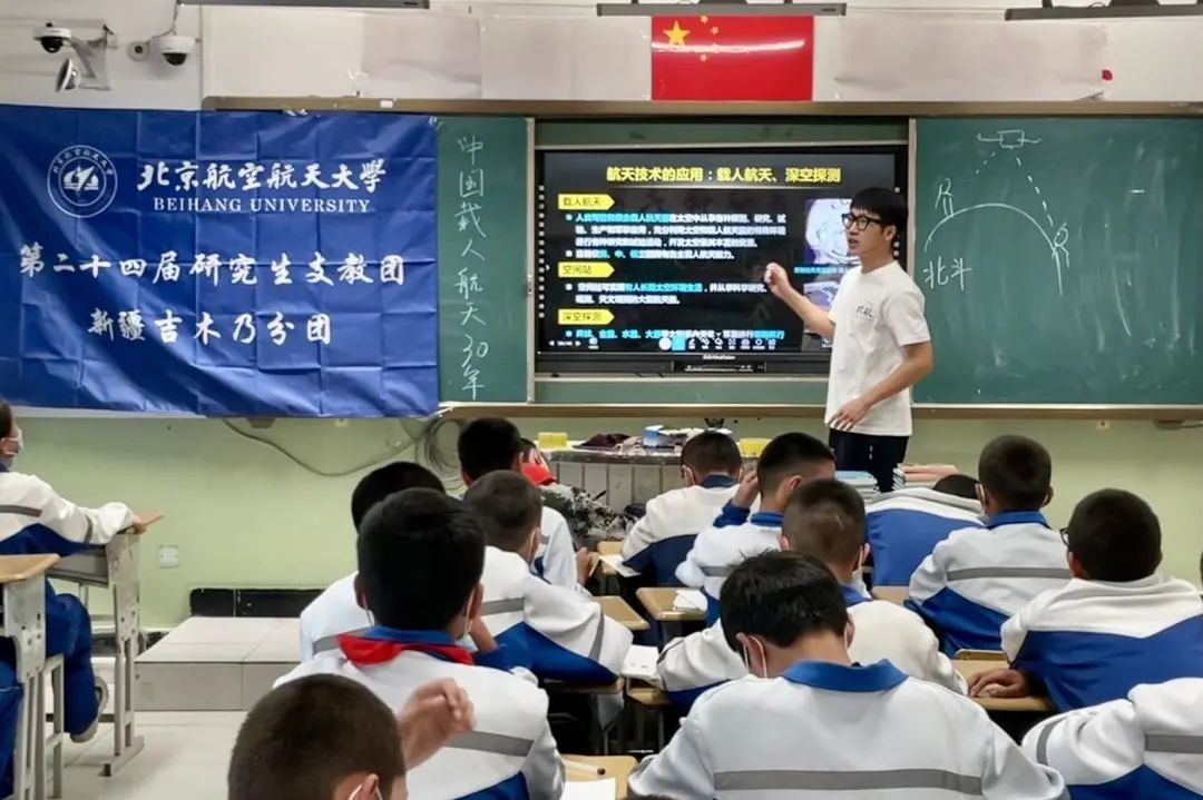 2022至2023年,他作为北航第24届研究生支教团团长,赴新疆阿勒泰地区吉木乃县高级中学支教。担任生物教师、班主任等,扎实开展教育教学工作,教授科目成绩稳居年级平行班前列,指导学生参加自治区学科竞赛,教研成果获县实验微课一等奖。
