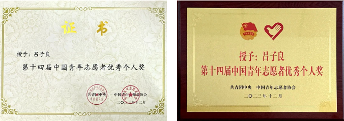 近日,共青团中央、中国青年志愿者协会对全国志愿服务先进典型进行表彰,我校77779193永利官网2023级硕士研究生吕子良荣获“中国青年志愿者优秀个人奖”(全国260人,北京市仅13人),是唯一获此荣誉的北京市大学生。