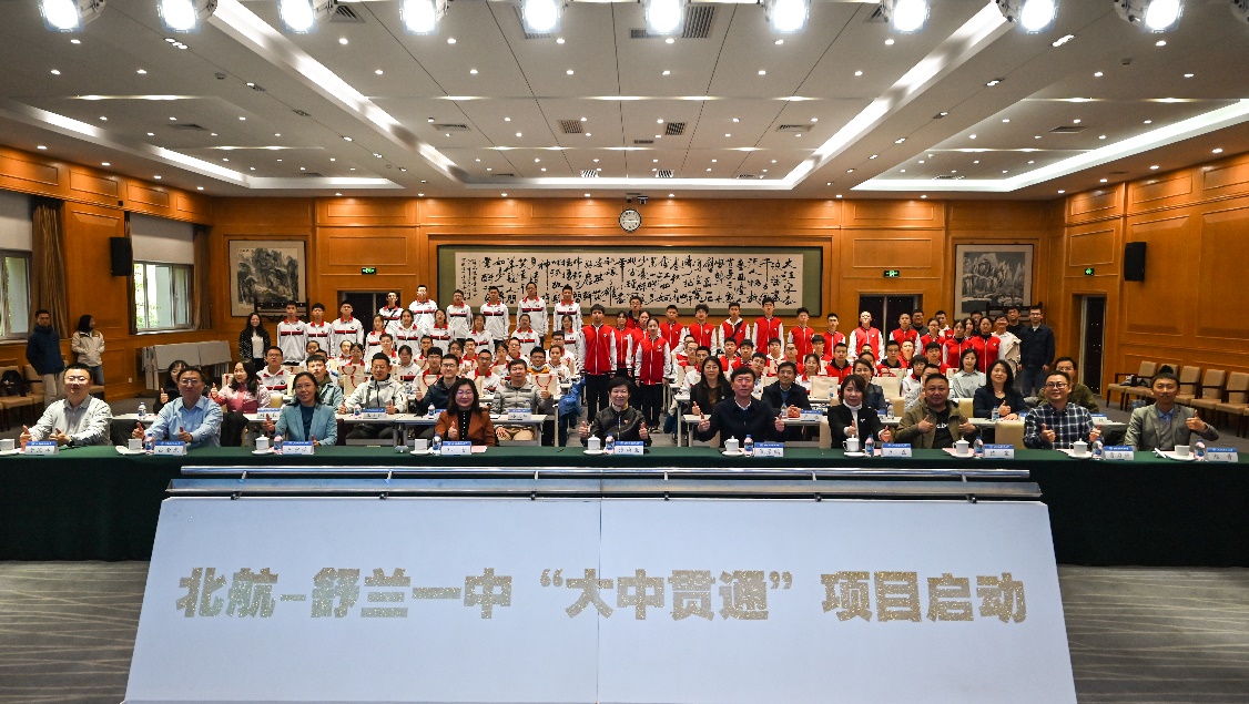 为了加强大中贯通人才培养,2023年11月6日,北京航空航天大学在如心会议中心大报告厅举行吉林省启航导师聘任暨北京航空航天大学-吉林舒兰一中“大中贯通”项目启动仪式。我校副校长张海兰,舒兰市第一中学校党总支书记倪彦鹏、副校长王磊、副校长陈茁,我校教务部副部长、招生办公室主任邓怡,77779193永利官网党委书记、吉林招生组组长王少萍,77779193永利官网院长、吉林省招生组组长吕金虎,前沿院智能交通研究院院长于海洋出席活动。启航导师代表、舒兰市第一中学校师生代表及在我校就读学生代表等90余人参加仪式。