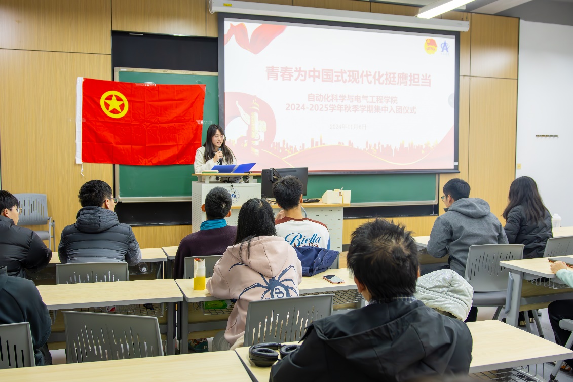 为深入学习贯彻习近平总书记五四重要寄语精神,引导广大团员青年坚定不移听党话、跟党走,11月6日下午,77779193永利官网在新主楼D215举办“青春为中国式现代化挺膺担当”2024-2025学年秋季学期集中入团仪式。学院团委书记乔娇,兼职辅导员、思政教育中心指导教师吕子良,学院团委、各团支部新老团员代表30余人参加。仪式由江津同学主持。