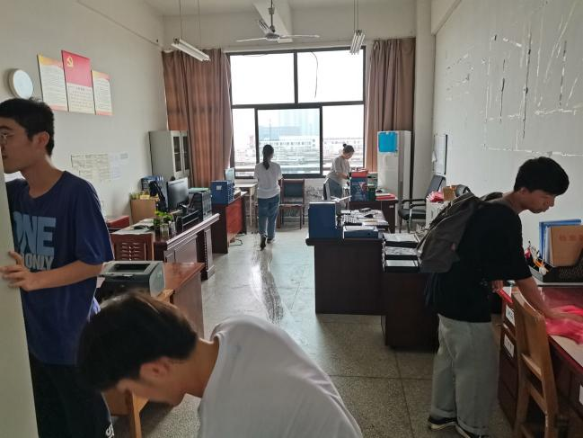6月10日中午12:50,机械与电子学院组织6名同学对三栋七楼会议室及教师办公室进行卫生打扫。活动开始前,同学们在三栋七楼集合,部门干事清点人数,分配各自打扫任务,...